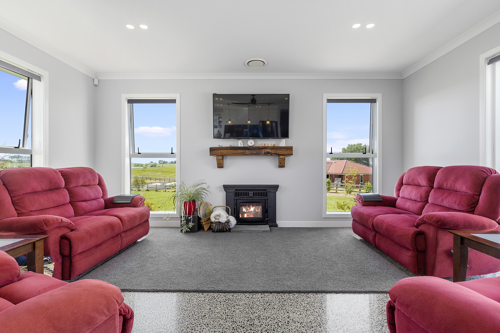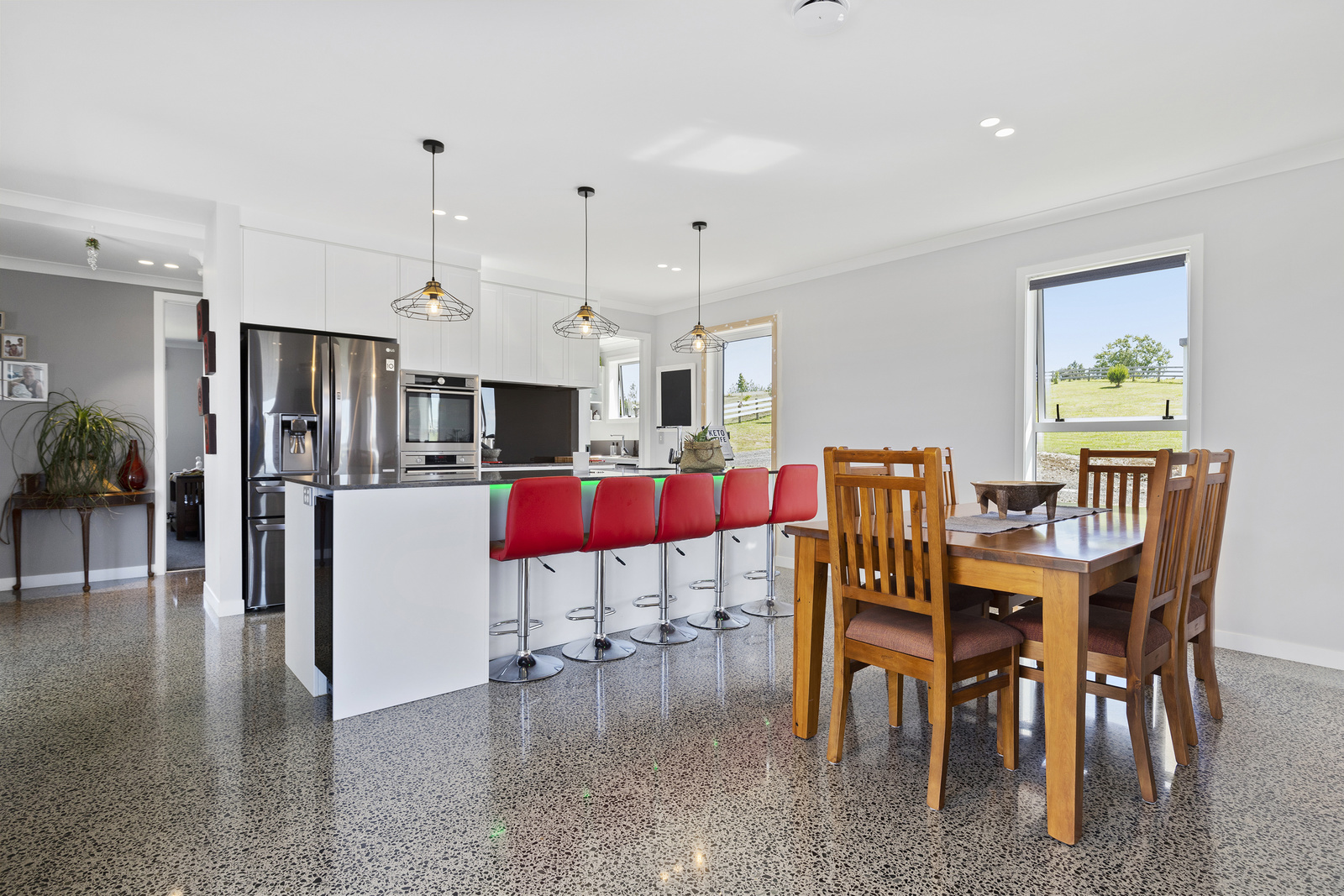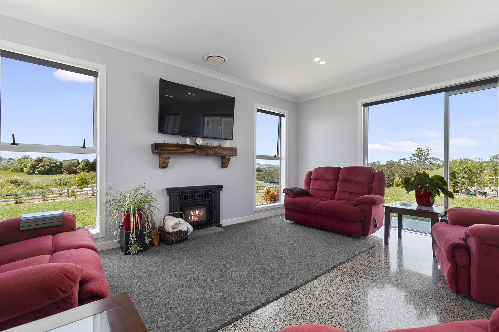 With a media system running throughout the home including out to the portico as well as having the two heat pumps ensures that no matter what time of year it is or season, or where in the house you are, your home can be cool as a cucumber for our up and coming summer months or nice, warm and toastie for those winter months.. with the HRV system keeping the temperatures all consistent throughout the home. The polished concrete flooring, together with the high standard of interior décor makes this home pop with modern looks while holding on to that cottage outdoor feel on the outside.